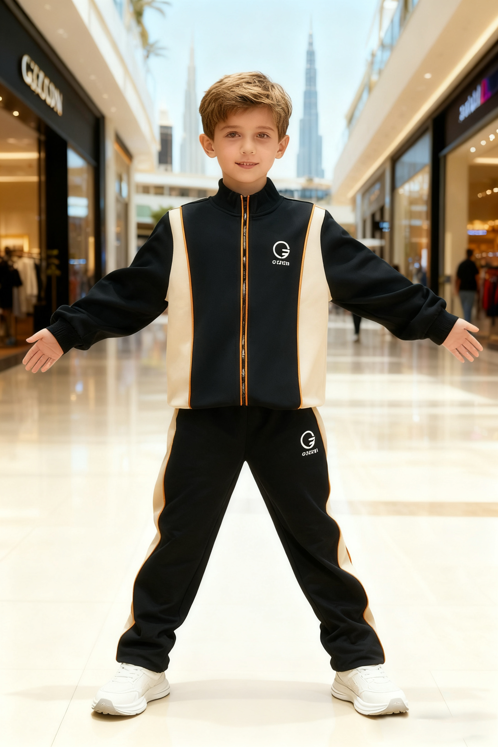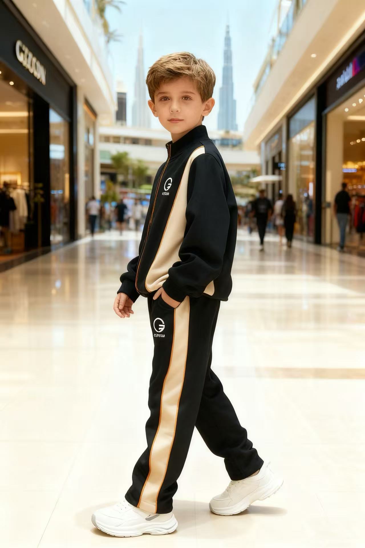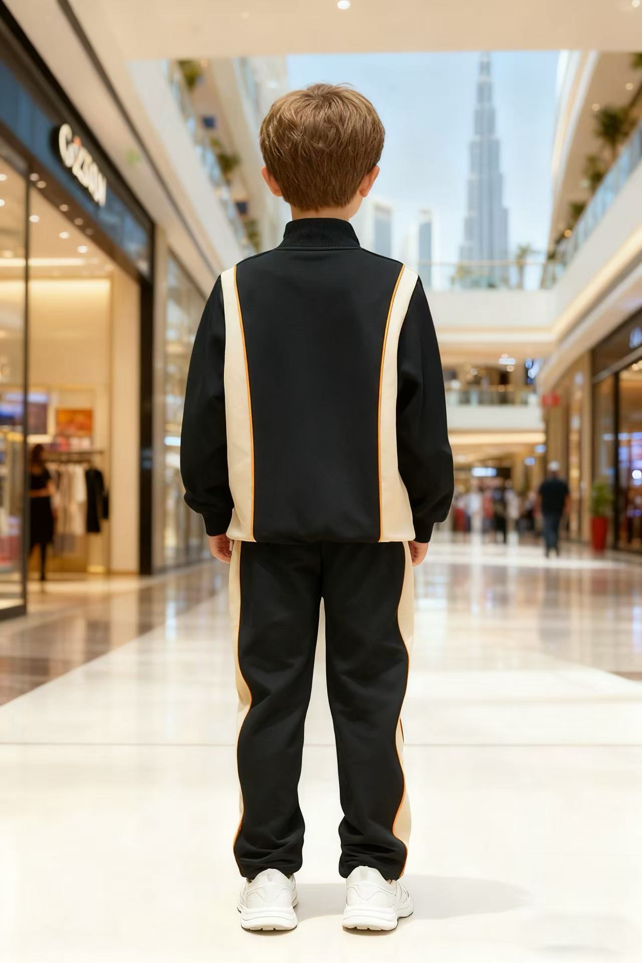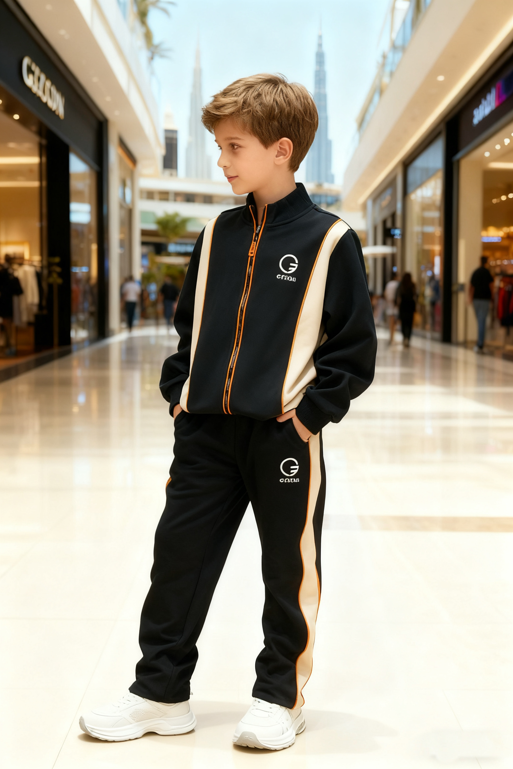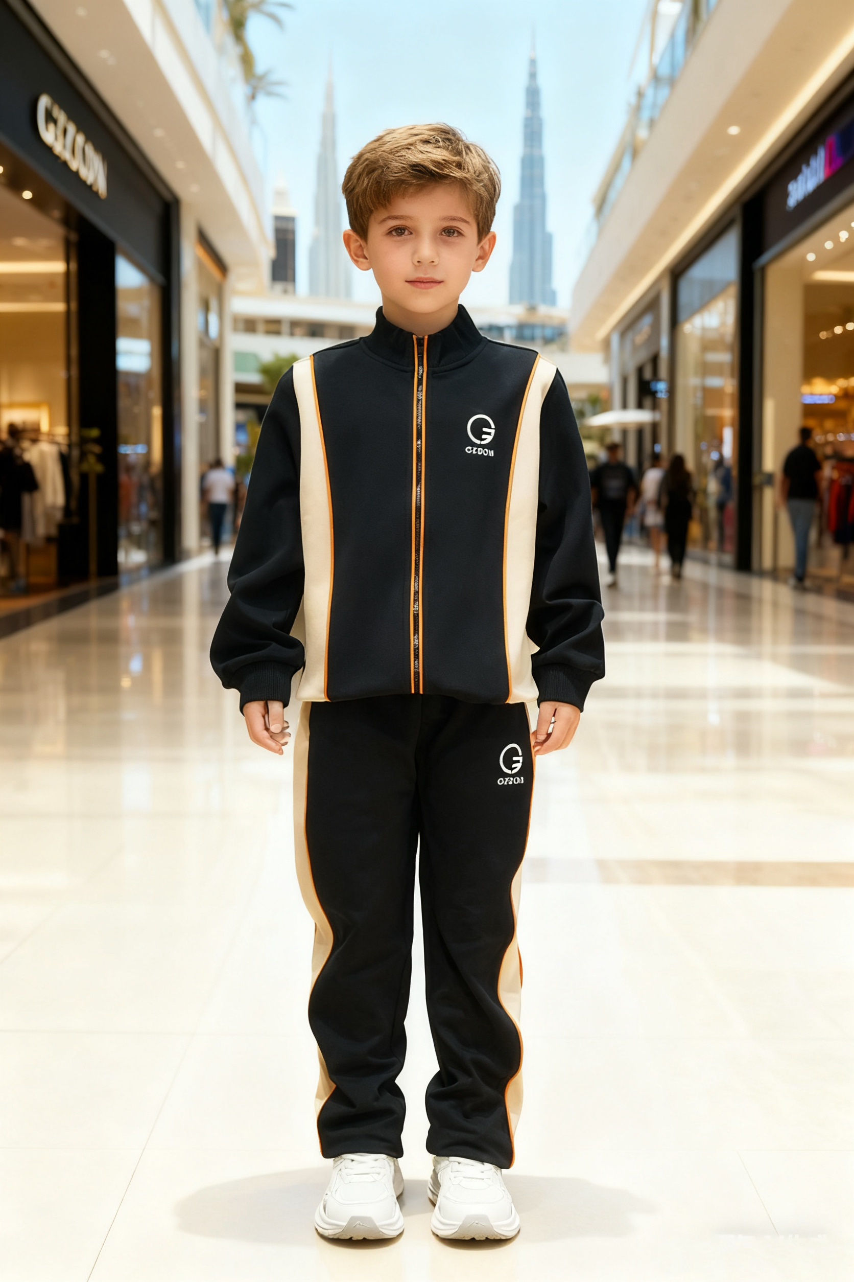 A boys’ tracksuit set crafted from premium cotton for a soft, comfortable feel during movement and long wear. Designed with an athletic silhouette and striking contrast side panels, it delivers a sharp sporty look that stands out in outings, playtime, and daily activities.