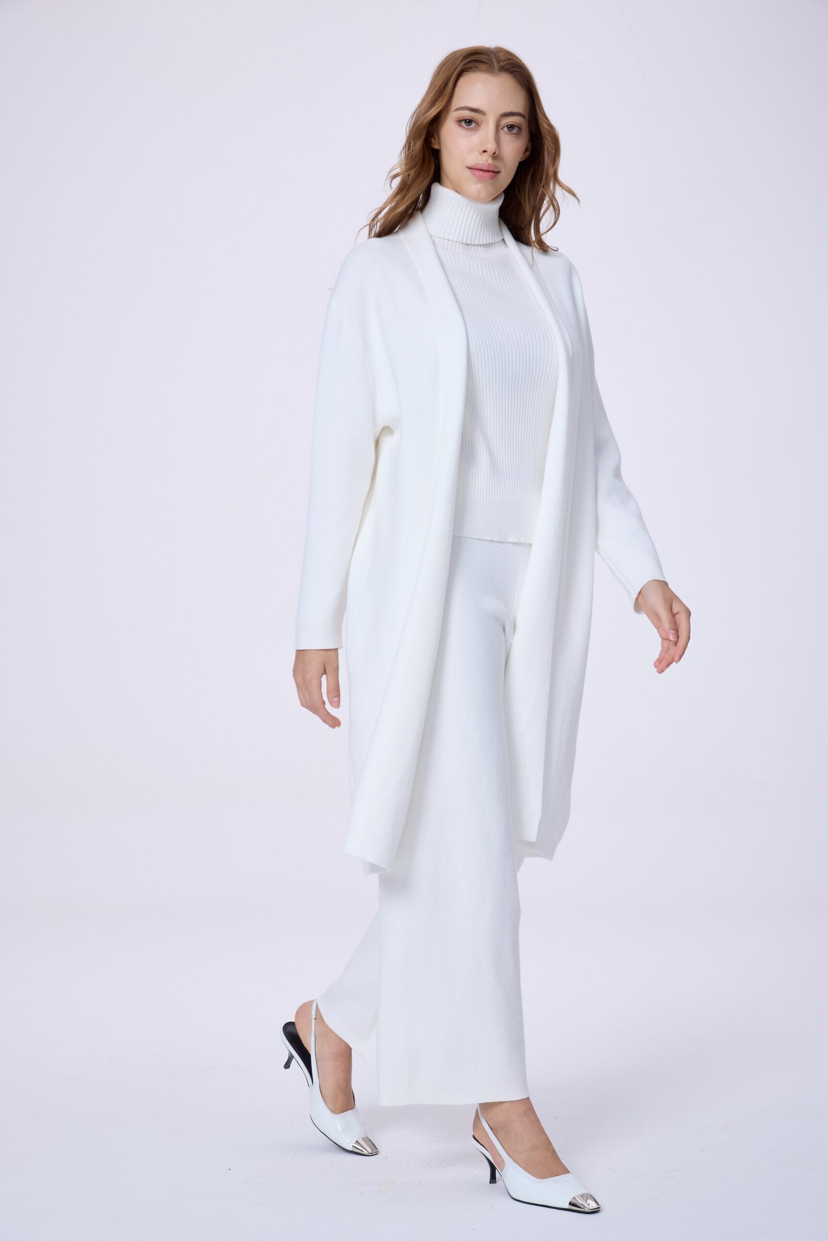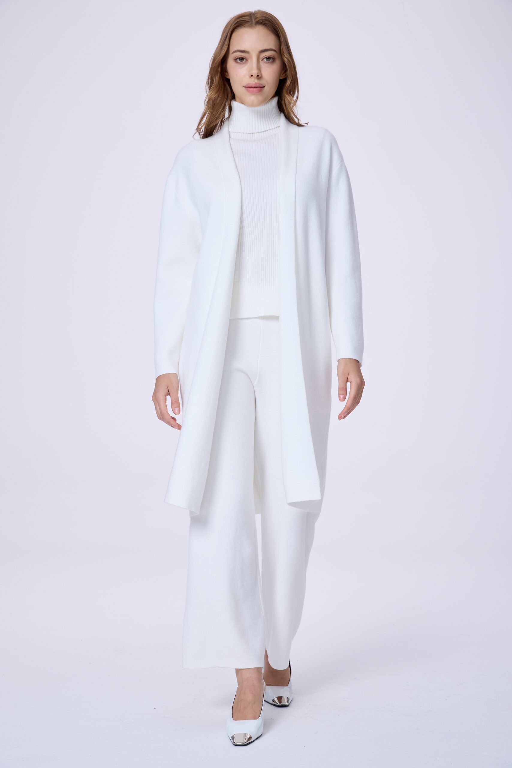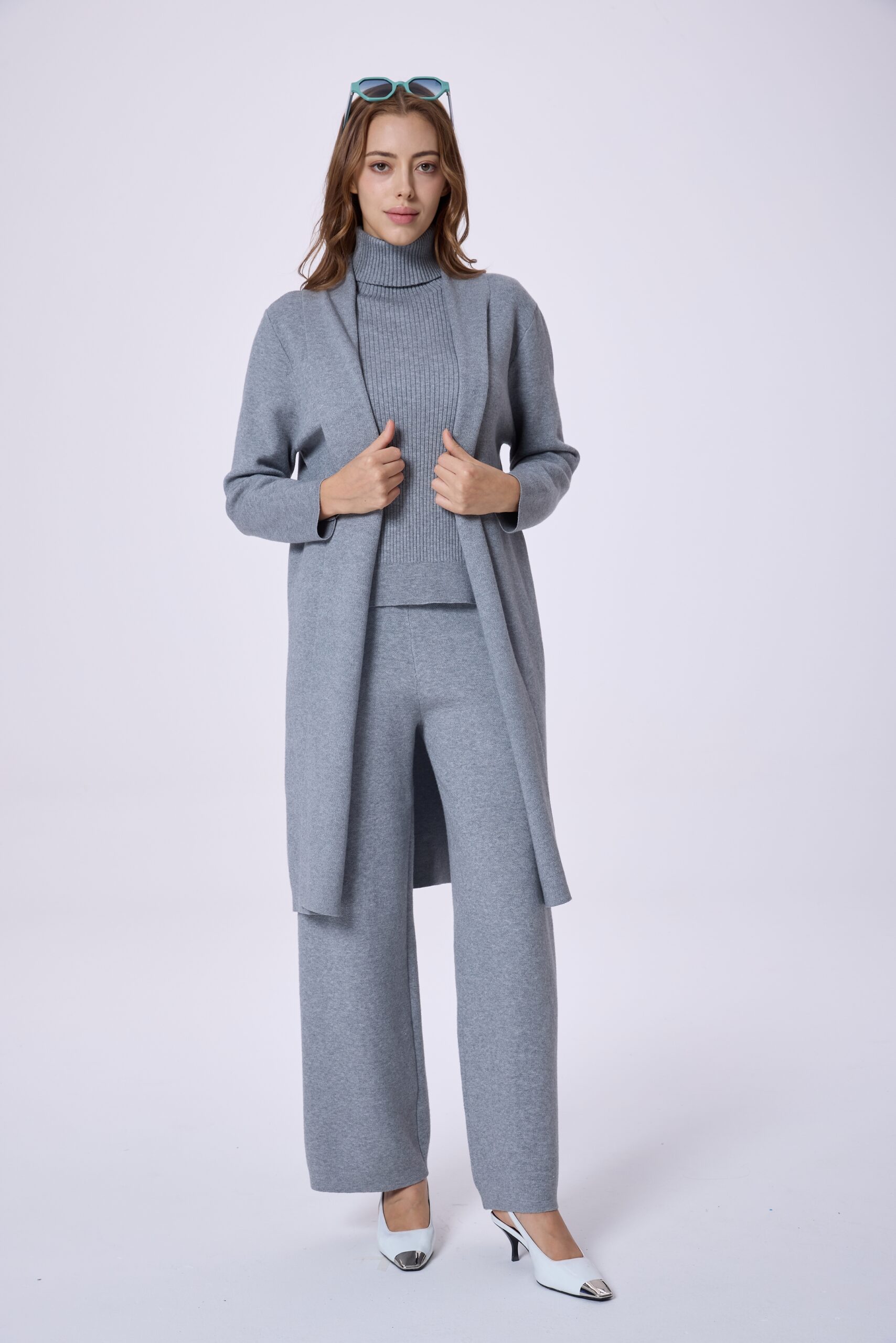 This women’s 3-piece set is designed to offer a polished and coordinated look with comfortable wear during cooler days. The set includes a long outer layer, a matching top, and wide-leg pants—creating a balanced silhouette that suits both everyday styling and smart occasions. Made from a premium, winter-feel fabric with a refined texture, it provides a comfortable experience while maintaining an elegant appearance. Easy to style together or mix with other pieces, this set is a practical choice for women who prefer a clean, modern look.