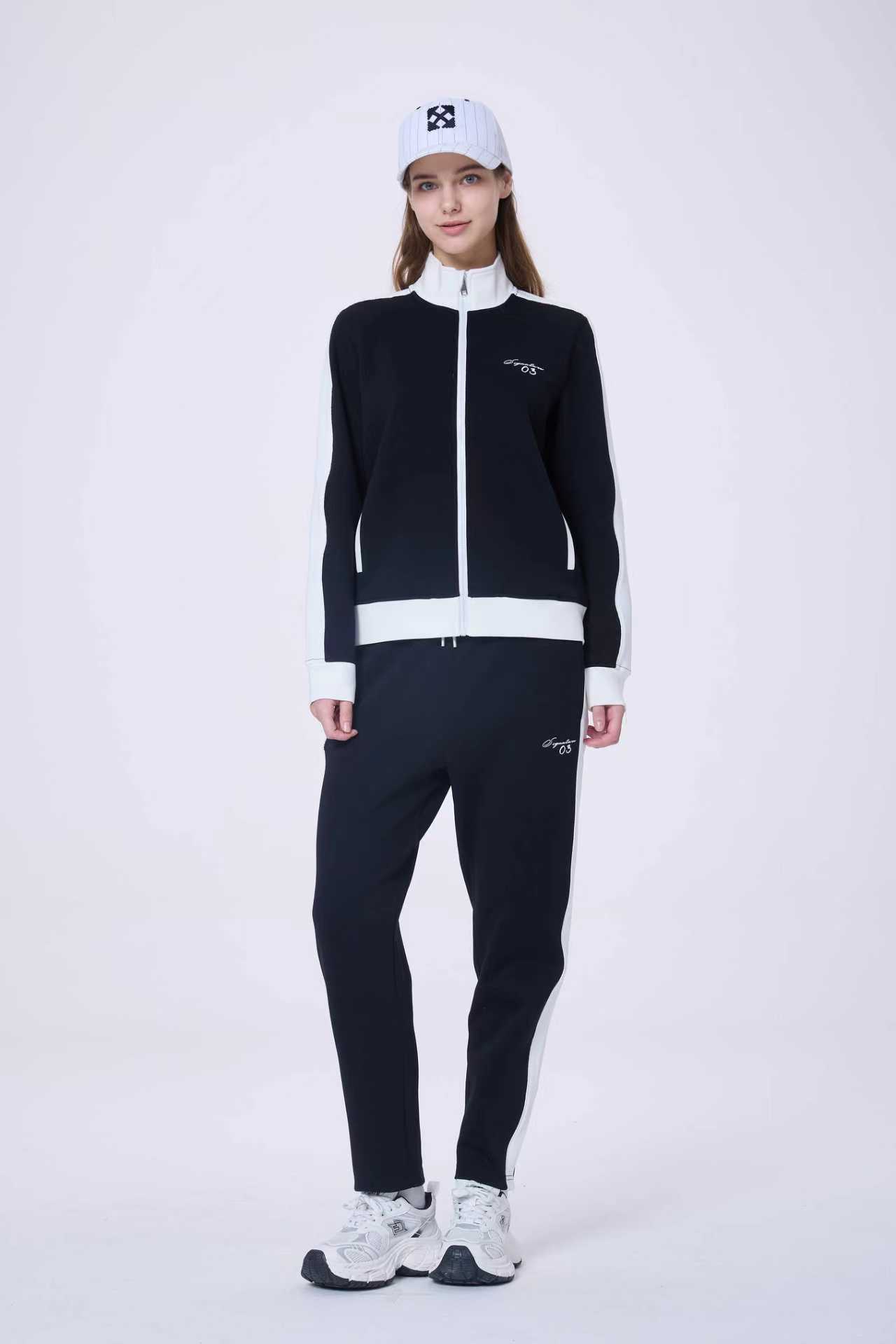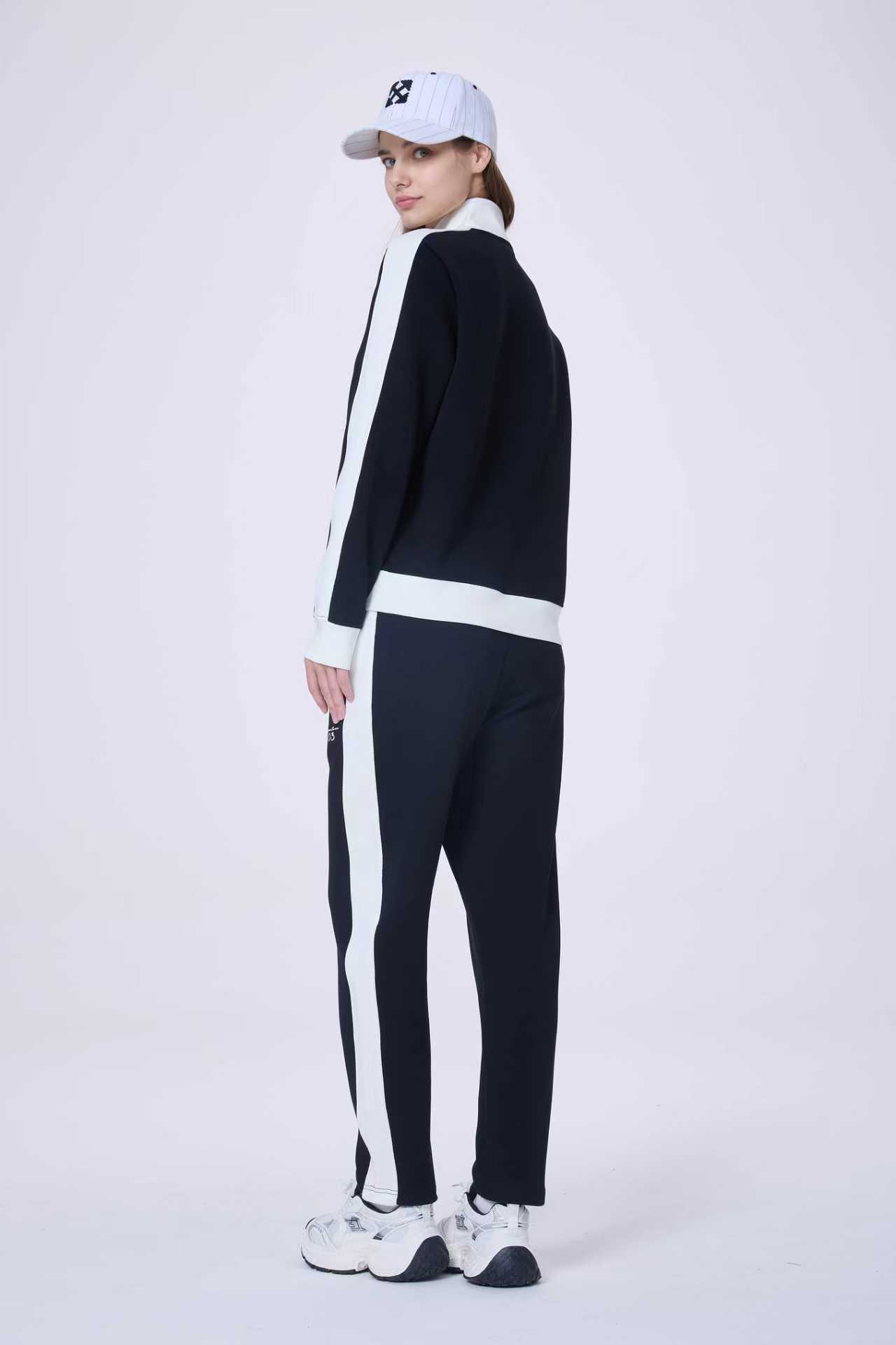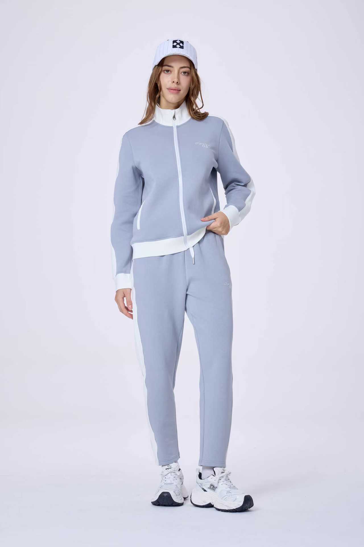 A refined women’s tracksuit crafted from premium cotton with sleek contrast panels and piping—designed for elevated everyday comfort and modern sporty style.
