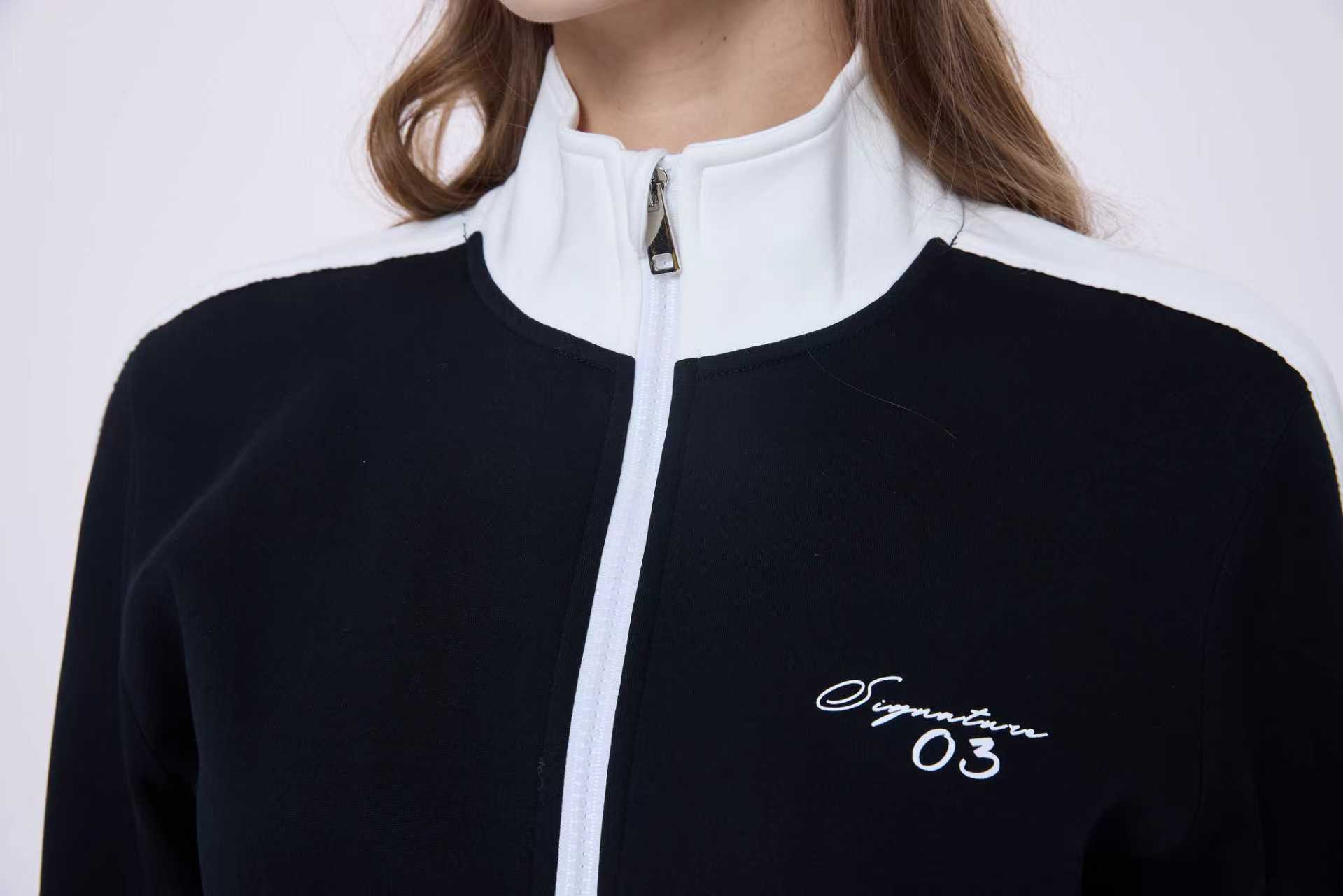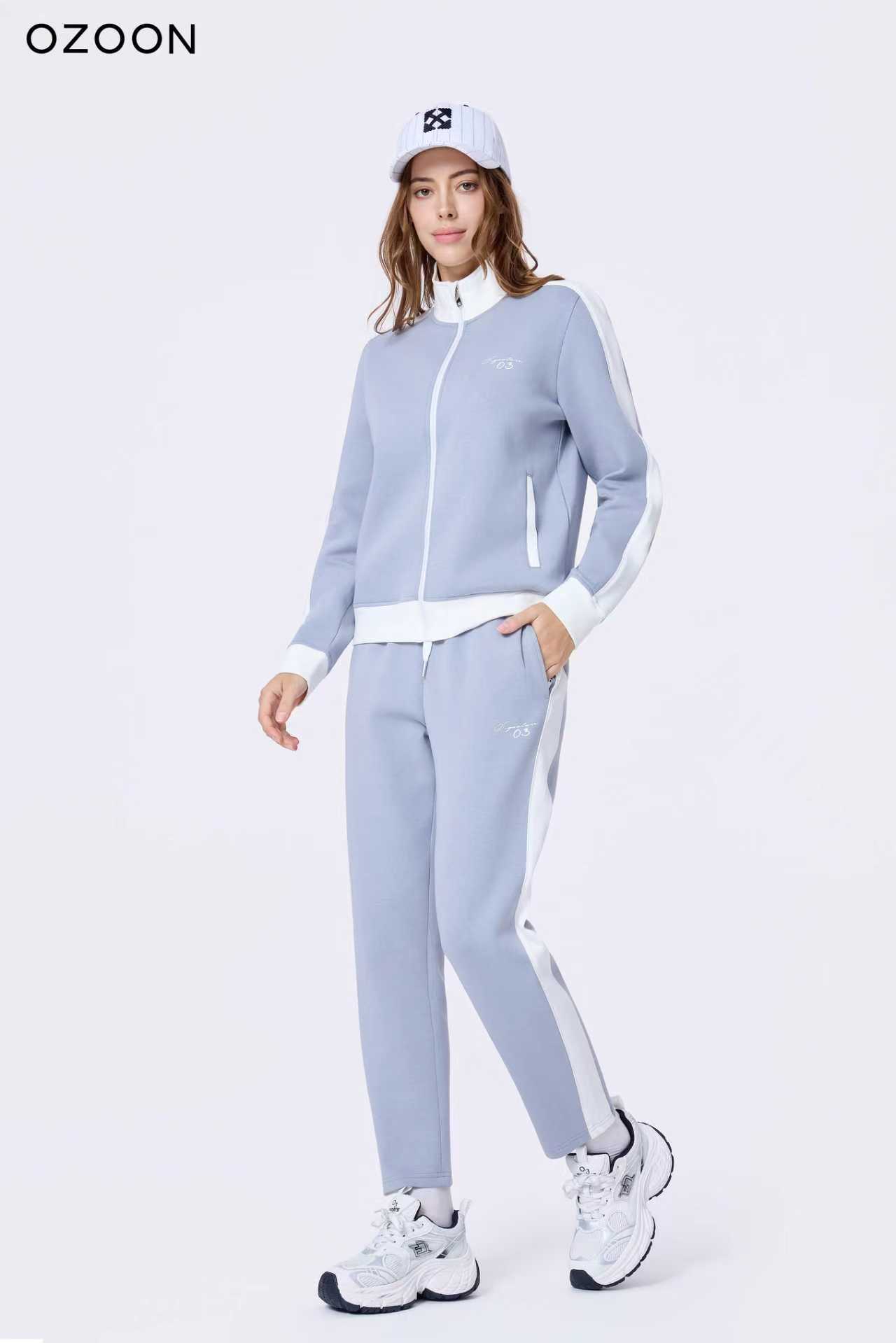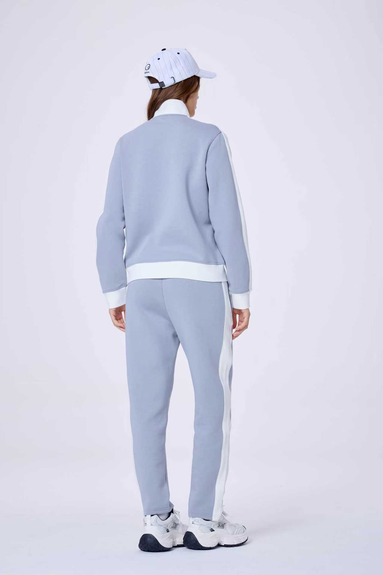 A refined women’s tracksuit crafted from premium cotton with sleek contrast panels and piping—designed for elevated everyday comfort and modern sporty style.