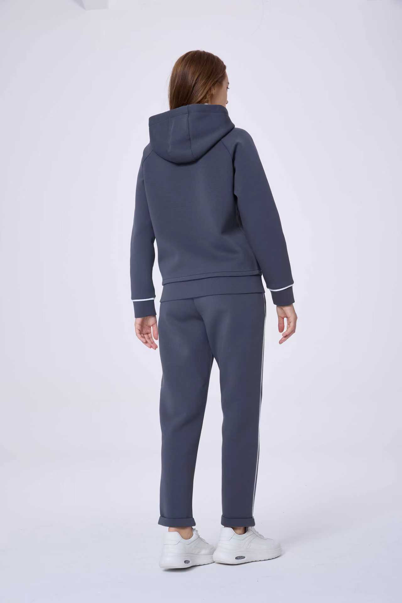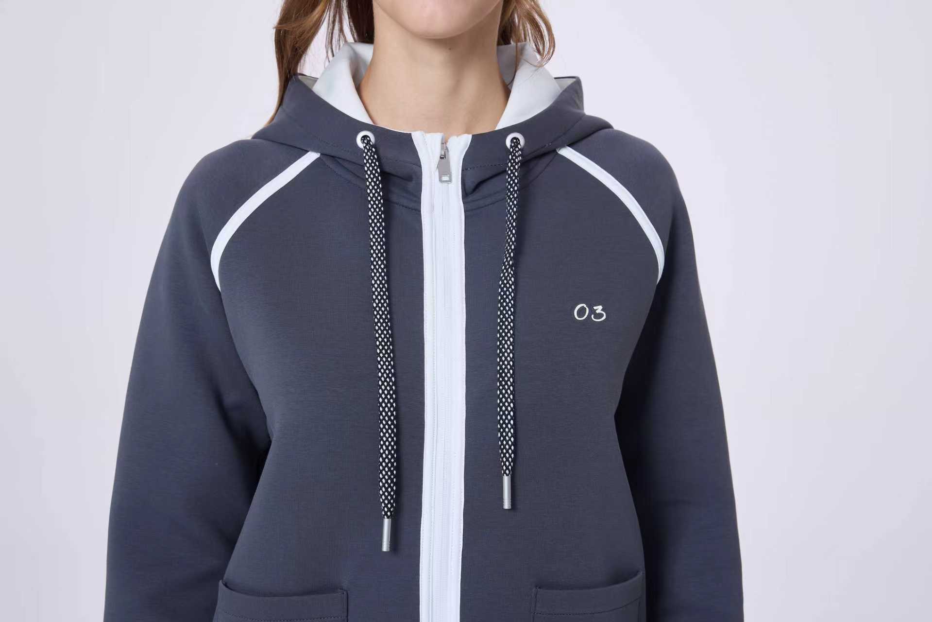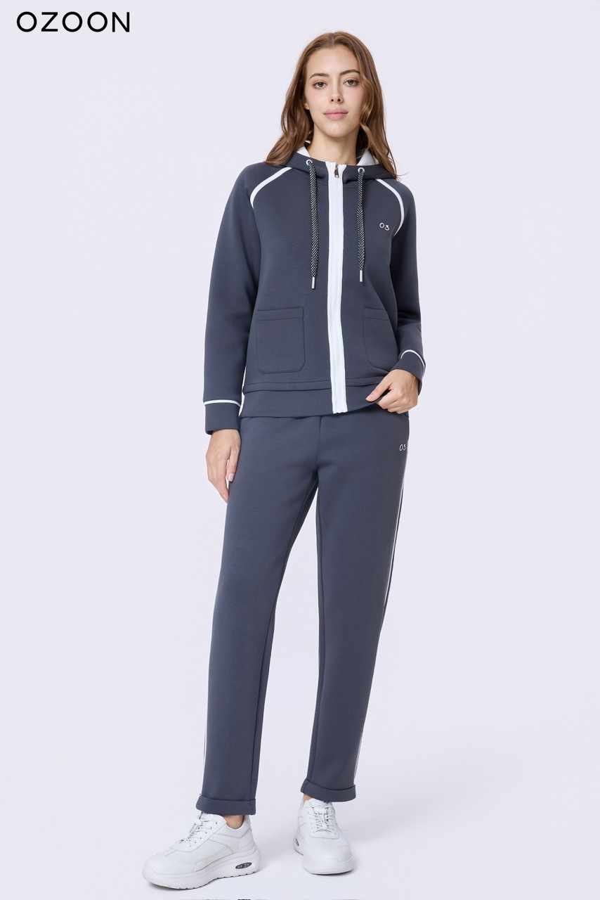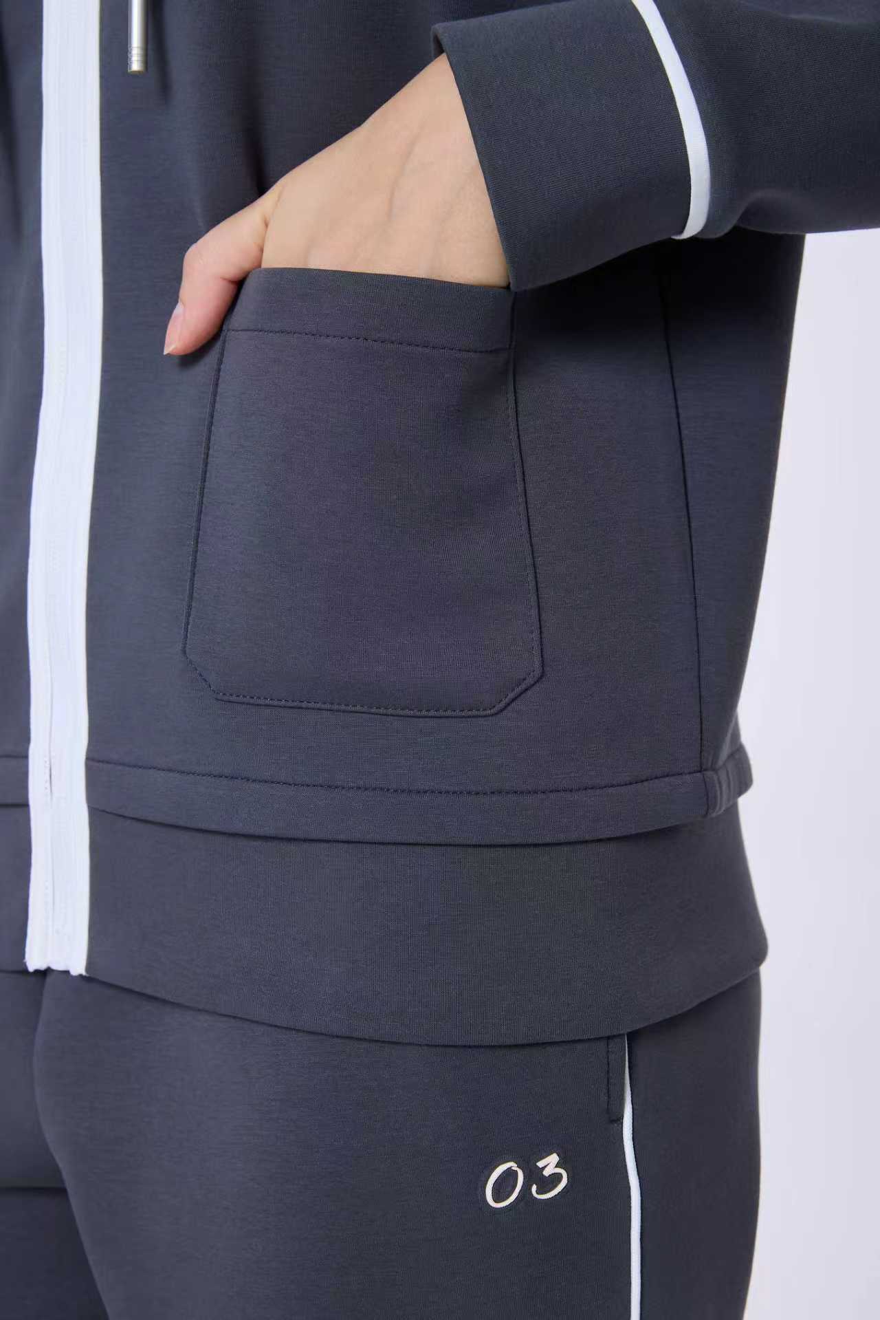 Designed for daily comfort with a clean athletic finish, this women’s tracksuit set is made from premium cotton fabric that feels soft and smooth on the skin. The hooded jacket features a full front zipper, adjustable drawstrings, and practical front pockets, highlighted with contrast piping details that add a modern sporty touch.